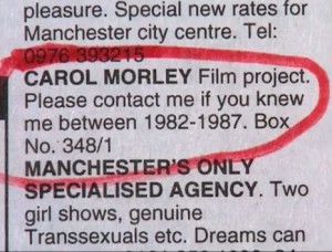 Carol’s interviewees fall into roughly three categories: people who went out in Manchester; Hacienda staff; and people who were connected with the music industry. The first and second groups contain people around her age who she would have met quite naturally. But the third group is mainly older men… and this is the group which she was linked with through her brother.