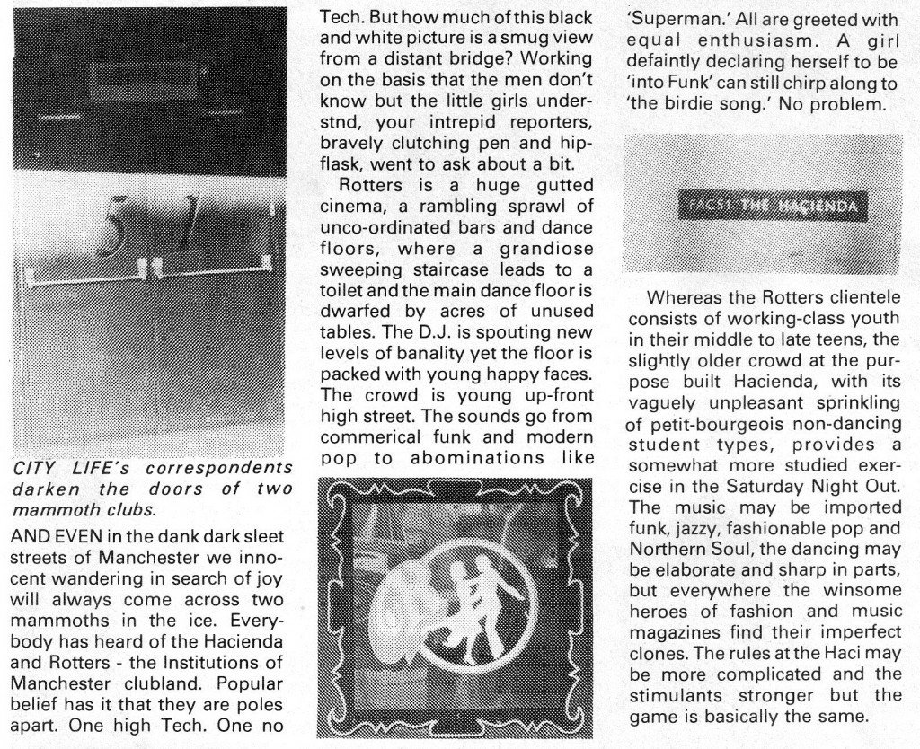 The two clubs were compared in Issue 3 of City Life (Jan-Feb 1984) by Mick & Dean, the ‘Nightlife correspondents':