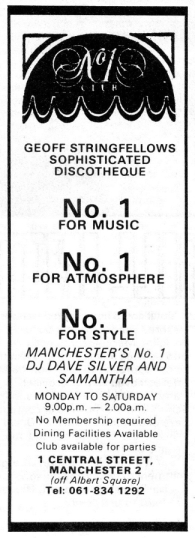 Cloud 9 was downstairs from Spin Inn record shop on Cross Street, opposite The Royal Exchange Theatre. I’ve been told that it was previously known as Top Of The Town, which is an odd choice of name because I’m sure it was a basement.