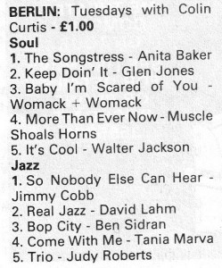 …today its crucial outlet is …at Berlin on a Tuesday night, with …Colin Curtis at the controls.” City Life Magazine Issue 15 (Aug/Sep 1984)