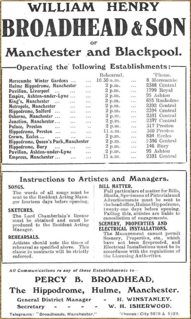 Both theatres were designed by the same architect, J. J. Alley for ‘The Broadhead Circuit’, which was a music hall circuit of ‘No. 2′ theatres (smaller or provincial theatres) all over the North West of England, managed from offices in Hulme: