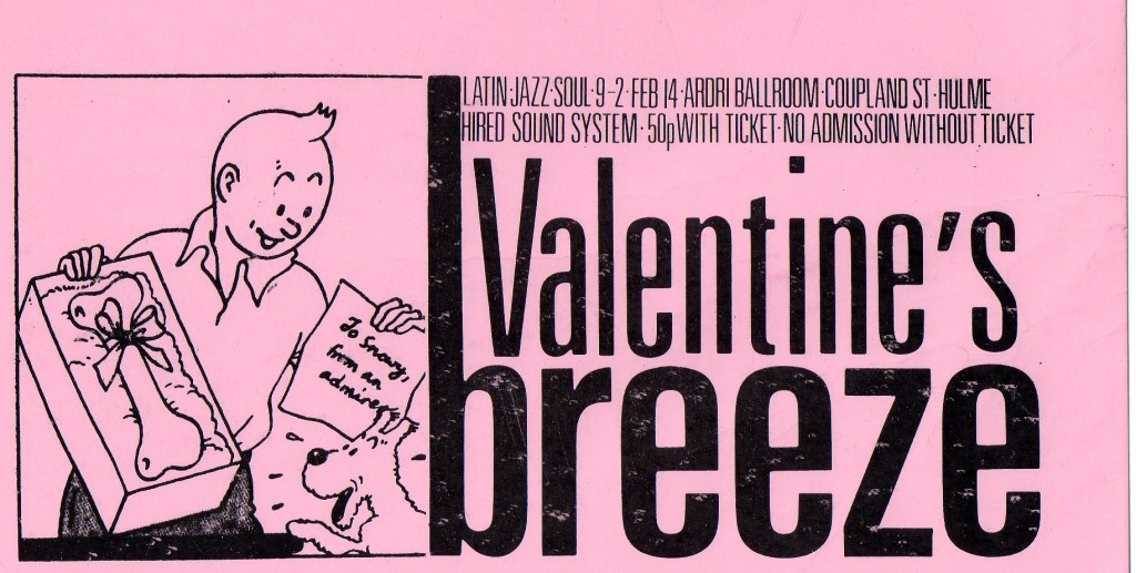 Although I was a Breeze regular, I didn’t make it to their Valentine’s night at the New Ardri but I kept the flyer all these years because it was so nice. (Or maybe I did go and I just can’t remember!) I loved their Tintin flyers… they were eye-catching, apparently effortless and un-egotistical.